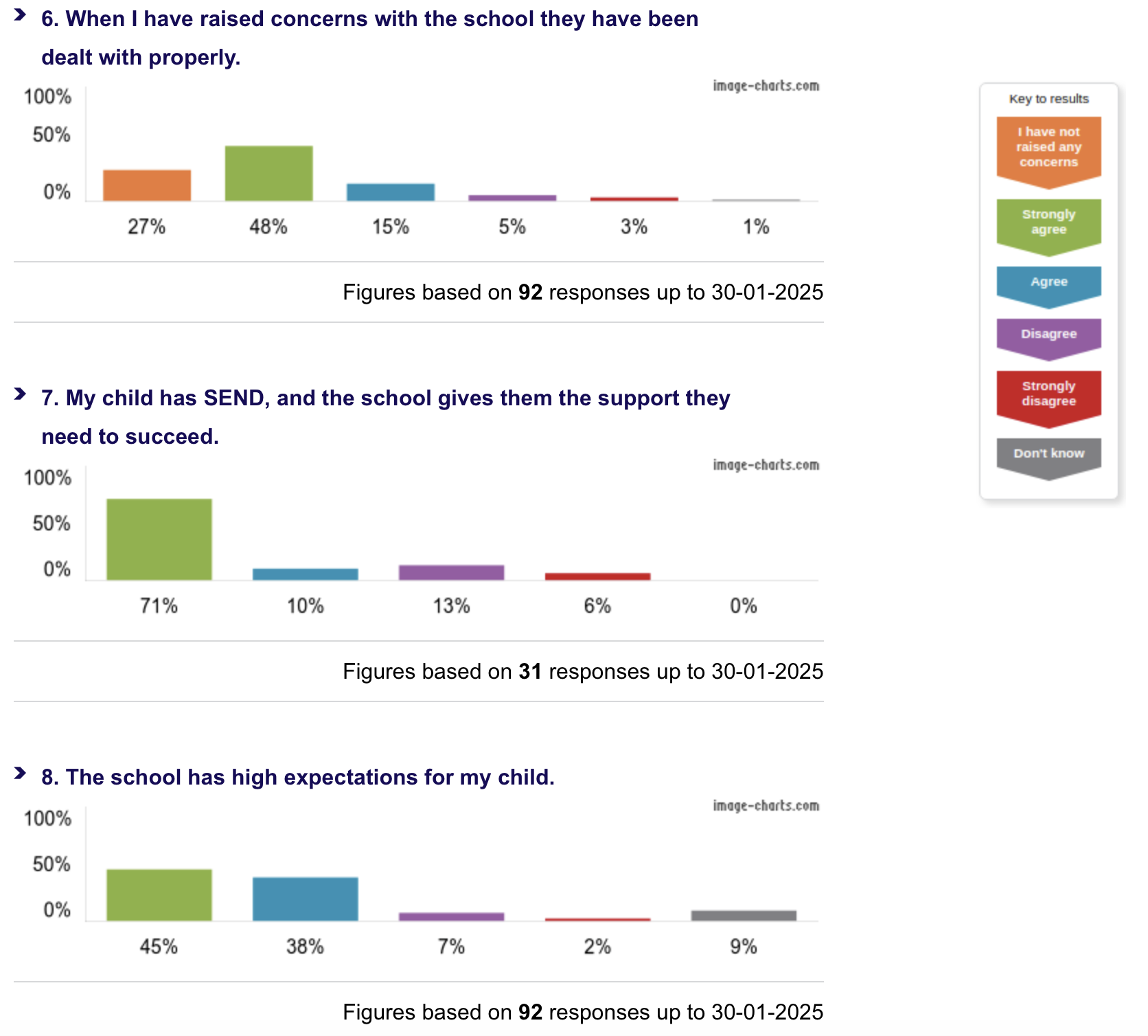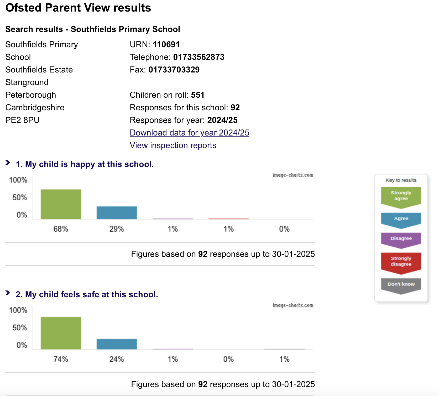 Below is a useful link to our Ofsted Parent View and the results of this are published every month.